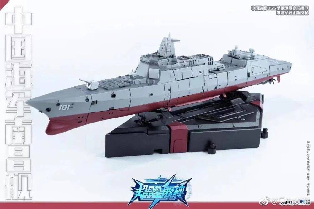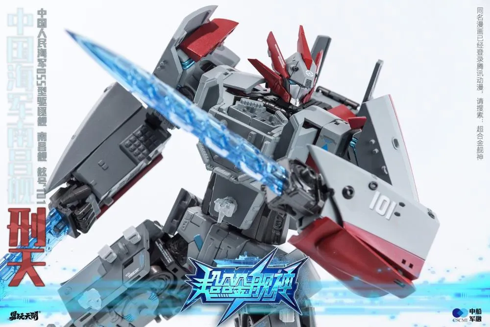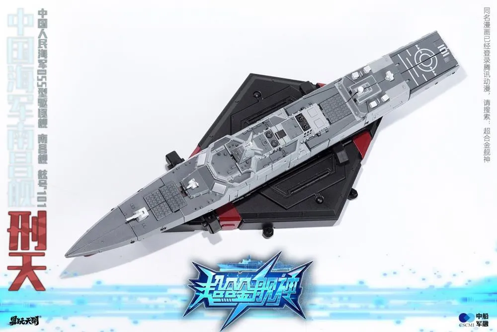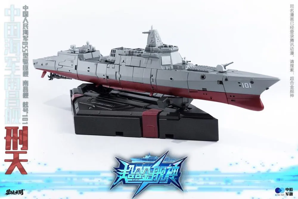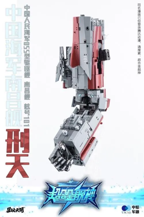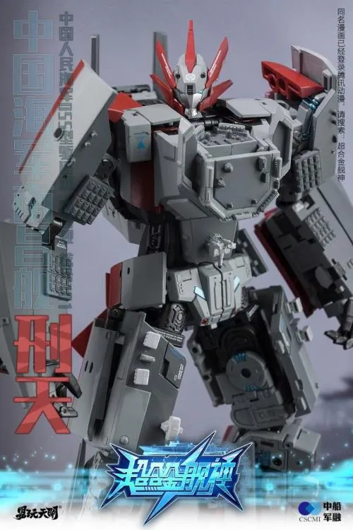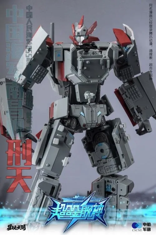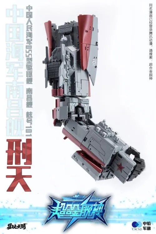 Xing Tian is a fully transformable figure switching between a fierce battling robot to a battleship.