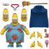 As seen on The Simpsons, this 7 inch scale highly articulated King-Size Homer ULTIMATES! figure features him with interchangeable heads annd hands, a soft goods cape, removable hat, and many other accessories.