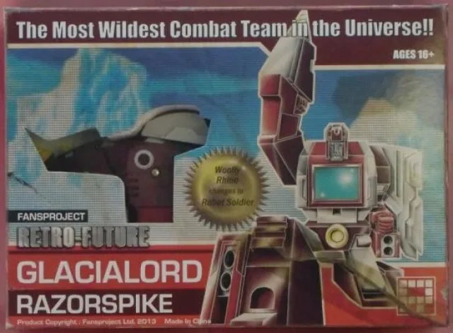 Razorspiker by Fansproject stands approximately 4.5-inches tall in robot mode and is part of Fansproject's Retro Future Glacialord Series of figures. Each figure features an original design inspired by retro figures from the 80s. Each figure is a prehistoric dinosaur that not only transforms but when all 5 figures are combined forms the mighty Glacialord!