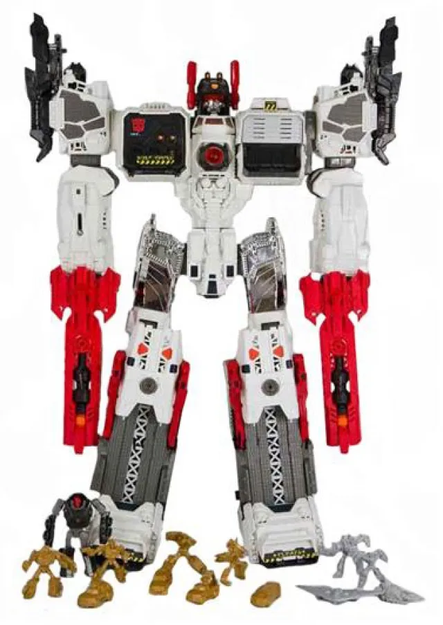 In addition to Titan Class Metroplex set includes a scamper figure, Scamper's blaster, 2 guns, 2 missiles, 2 shoulder cannons, repair claw, and 12 mini-figures (Orion Pax, Megatron, Bumblebee, Thundercracker, Trailcutter and Hoist).