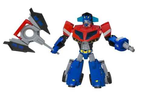 Transformers Animated Voyager Class Earth Mode Optimus Prime is a Voyager Class scaled figure that stands 8-inches tall in robot mode and transforms from robot to Semi Truck and back.