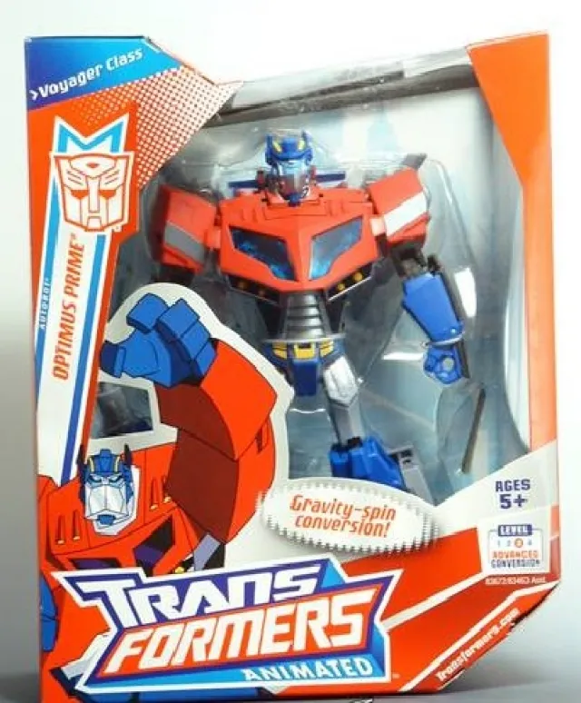 Note: This is Voyager Class Optimus Prime but packaged in Robot Mode.The Transformers Animated series premiered in December 2007 on Cartoon network and featured a much more different art style, than the traditional Transformers lines. Each figure in the toyline represents this unique style, and brings a distinct flavor to the Transformers lineage.