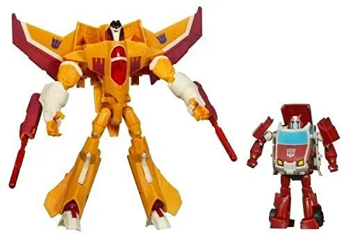 Transformers Animated Voyager Class Sunstorm and Ratchet Exclusive is a Voyager Class scaled figure that stands 7.0-inches tall in robot mode and transforms from robot to Plane and back.
