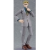 He comes with three face plates including a standard face, a calm face and an expressionless face. Optional parts include his cursed tool, a 7:3 effect part, a standalone pair of sunglasses as well as an interchangeable upper-body part to display him with his jacket off. In addition, a collar part without a necktie for use with the interchangeable upper-body part and a necktie-wrapped hand part are included. An articulated figma stand is included to display the figma in a variety of poses.