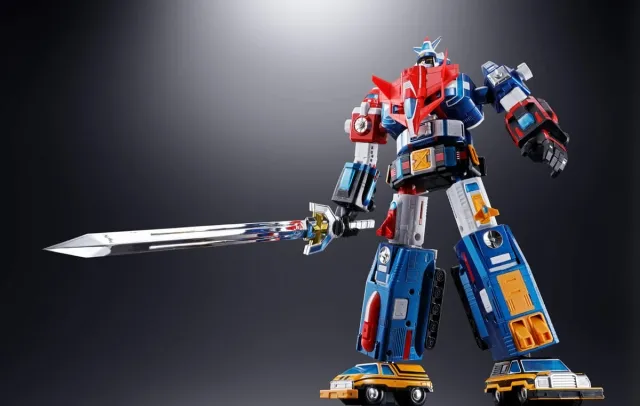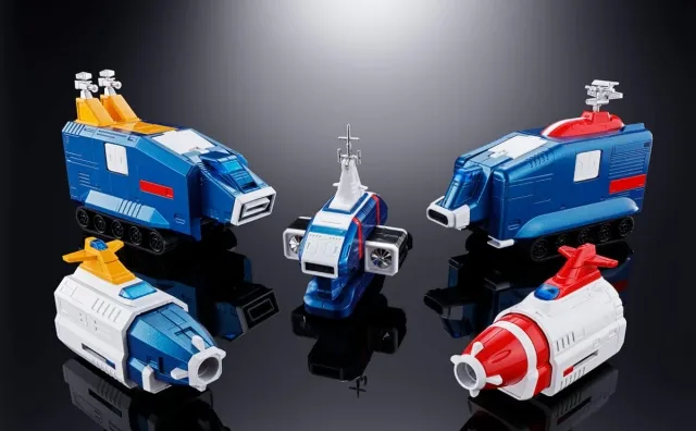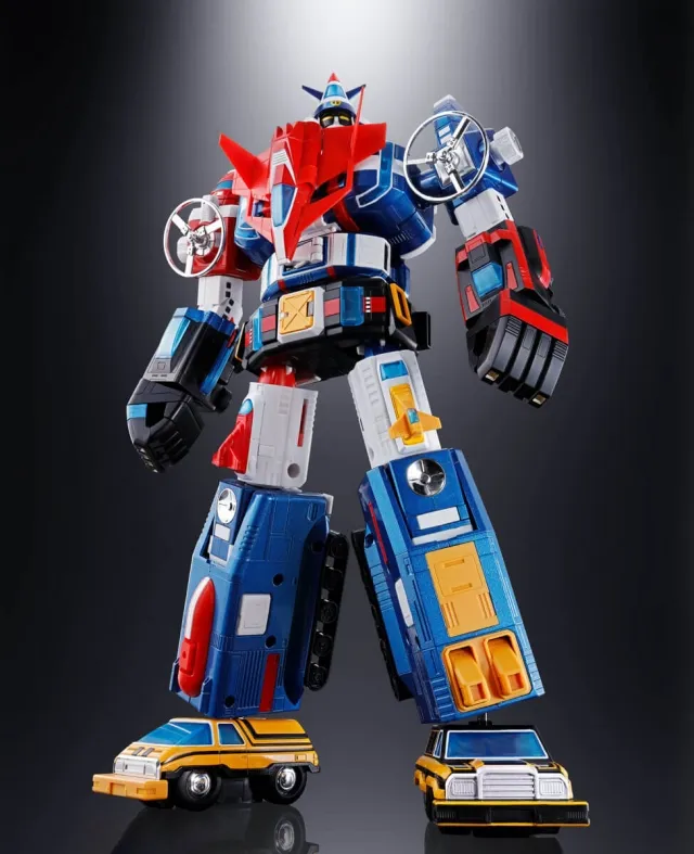Fifteen vehicles combine into one massive robot! A long-awaited Soul of Chogokin edition of the globally popular super robot, it faithfully forms into the three Air, Land, and Sea Team combat modes as well as the towering Dairugger XV!
