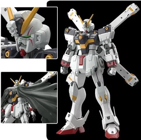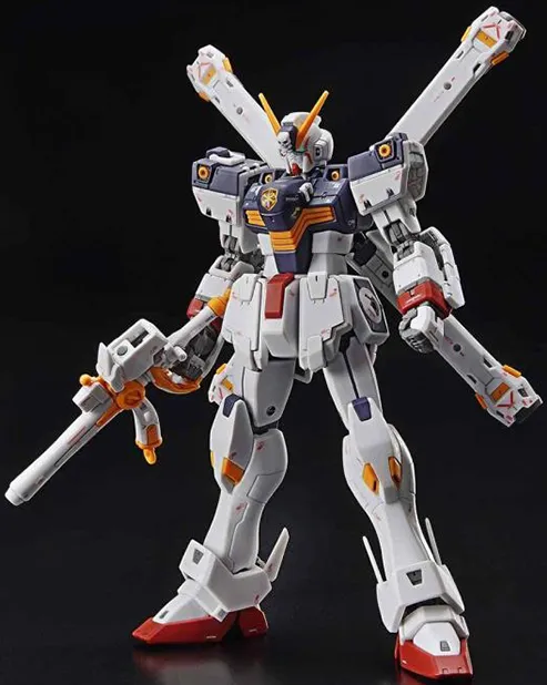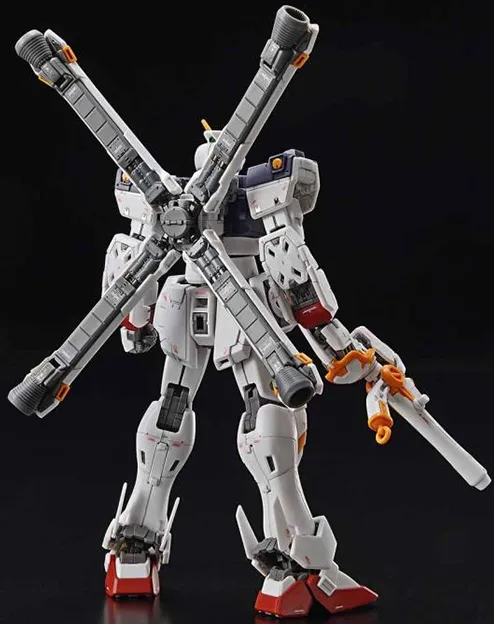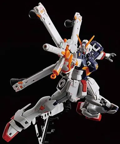 The RG Crossbone model kit comes with a variety of weapons, including Zanbuster, 2 brand markers, heat daggers, beam sabers, beam shield, anti-beam coating cloak with a pre-molded combat damage, scissor anchors, feet heat daggers, and a pilot figure.
