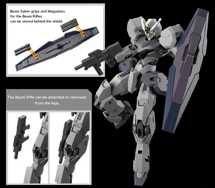 From the popular anime series Mobile Suit Gundam: The Witch from Mercury comes a new model kit of a new product (tentative). The ball joints in the neck and waist allow for the model to tilt forward and back, along with the ability to store the beam saber and beam rifle behind its shield.