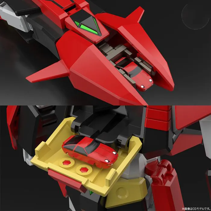 Hiryuu used by Joe Raibaru from 'The Brave Express Might Gaine' is presented in model kit form! The change from Jet Mode to Robot Mode can be reproduced by the assembled. The weapons of Hiryuu used in the animation are also presented.