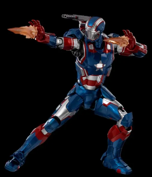 DLX Iron Patriot's classic blue and red armor is brought to life with mobile accessories. Its back-mounted cannon can be rotated for different over-the-shoulder poses, the attachable micro-cannon can be fixed onto both forearms, and flying effects can be attached to the feet for action poses.