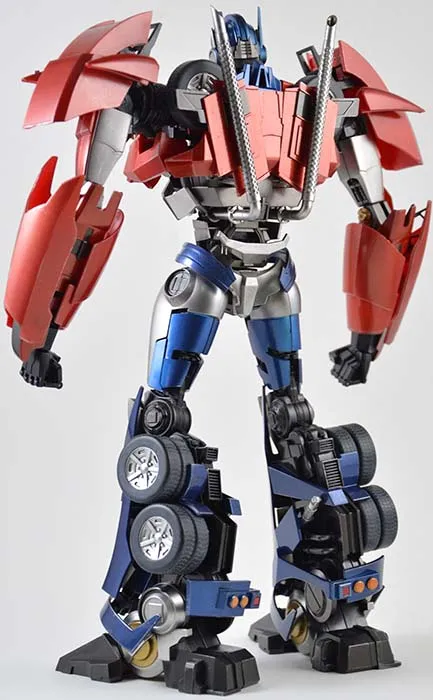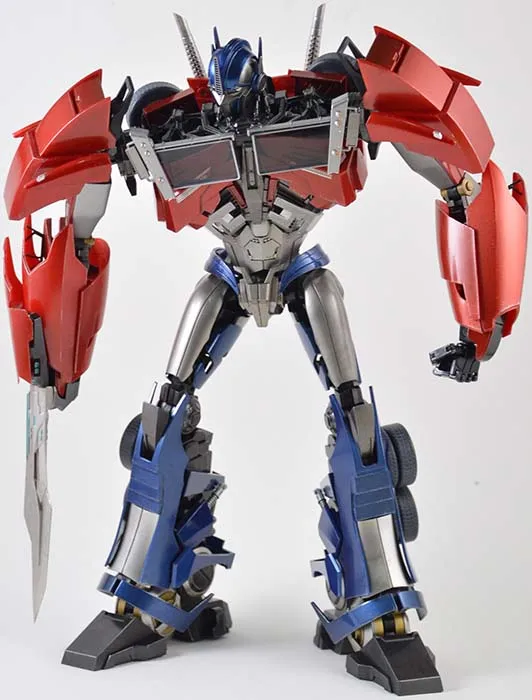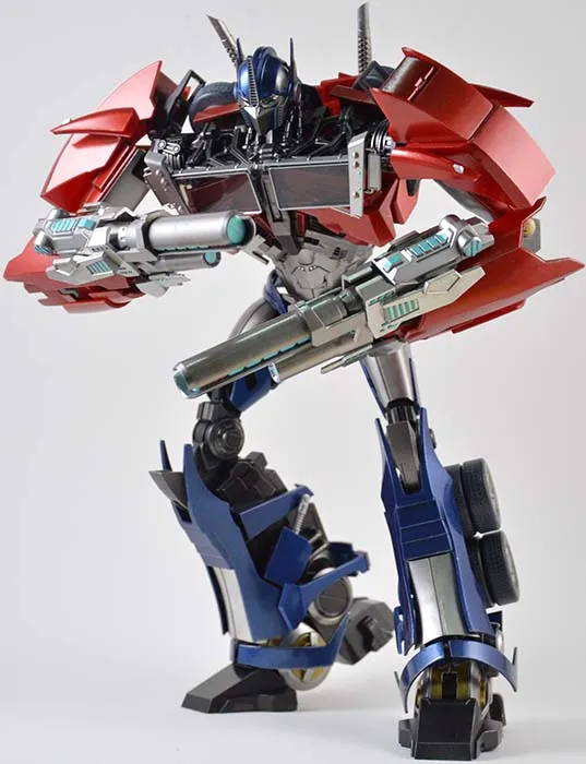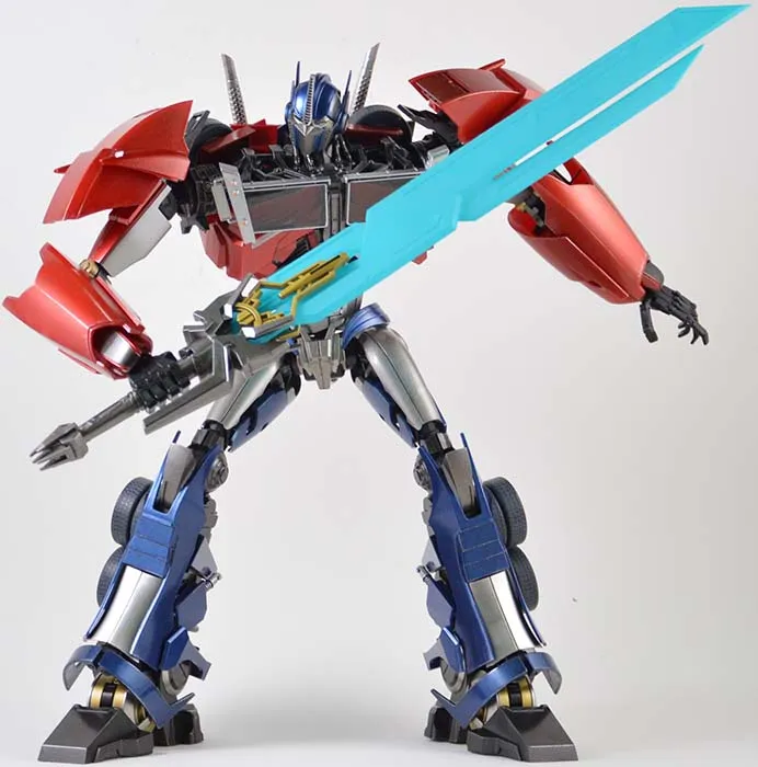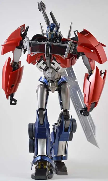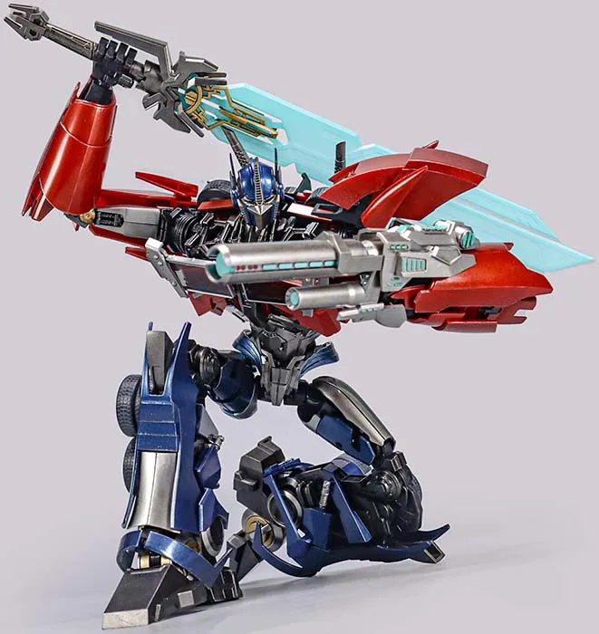 Stands at 11.4 inches, features die-cast parts, LED lights for the eyes, and a plethora of accessories which includes a pair of arm blades, a pair of arm blaster, 2 Star Saber swords (silver and blue) and a swappable head, this figure will surely be a great addition to any Transformers collection.
