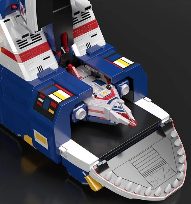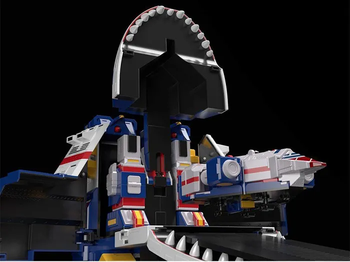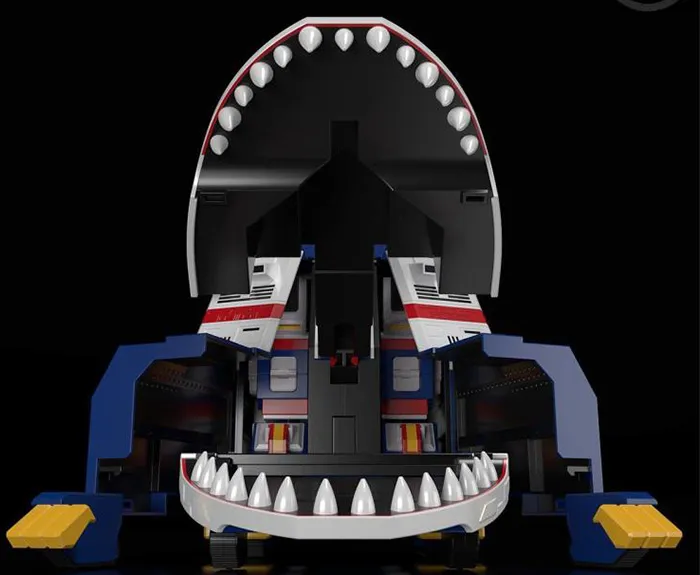 Based on the Taiyo Sentai Sun Vulcan television series, the Super Mini-Pla Jaguar Vulcan model kit becomes a functional flying fortress once complete. The Jaguar Vulcan features an opening jaw, a pull out ramp and can also hold Cosmo Vulcan and Bull Vulcan (sold separately).