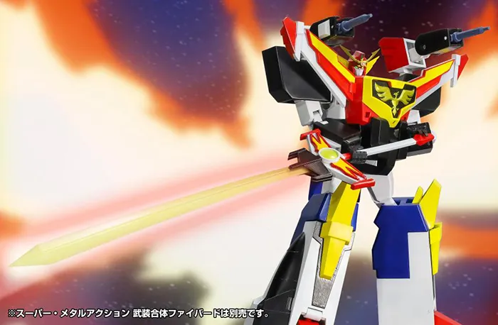 From the classic anime series The Brave Fighter of Sun Fighbird comes a new Super Metal Action figure of the iconic Jet Gattai Granbird! Capable of transforming from a fire shuttle to a fighting robot, it can be combined with the Armed Combining Fighbird to create the Great Fighbird!