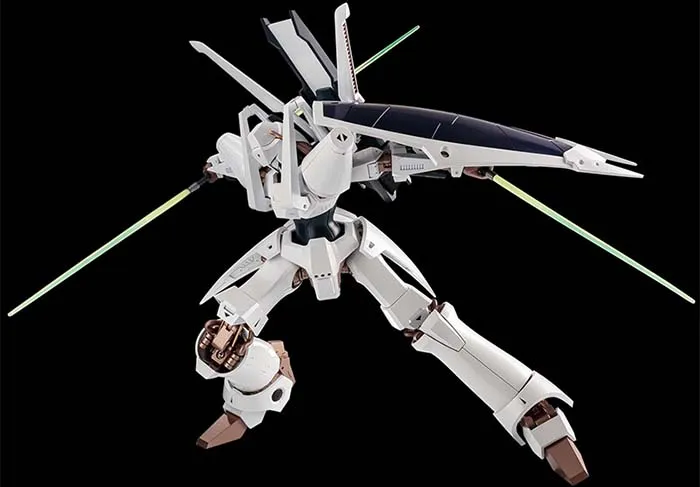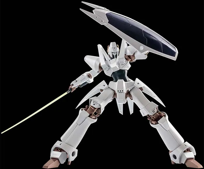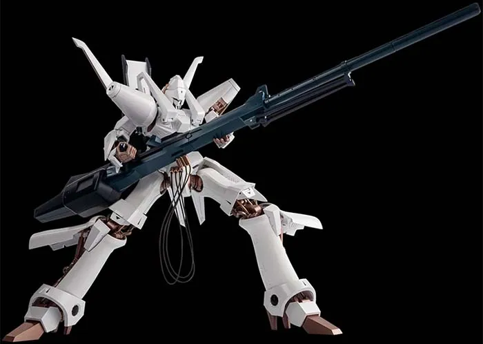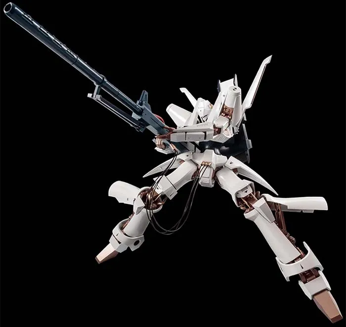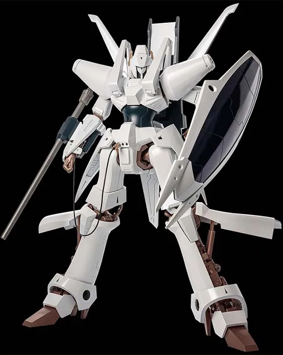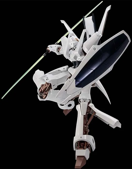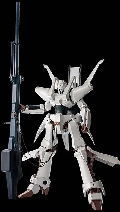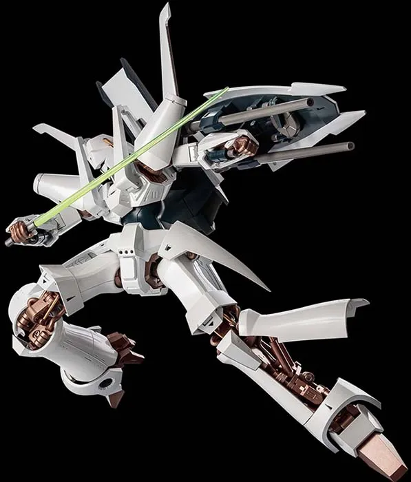 The figure features a luxurious finish colored in pearl white and metallic brown, with die-cast parts giving it a profound feeling. The figure also includes spiral flow storage, and random slate deployment, as well as a wide variety of weapons and accessories, such as the buster launcher.