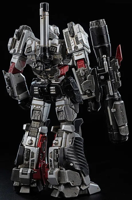 Transformers – MDLX Megatron is approximately 7-inch (18 cm) tall, with approximately 45 points of articulation and a die-cast metal frame. Accessories include one fusion cannon, one back cannon, and four sets of interchangeable hands.