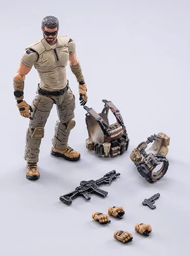 It is highly articulated and includes weapon accessories as well as several pieces of removable gear.