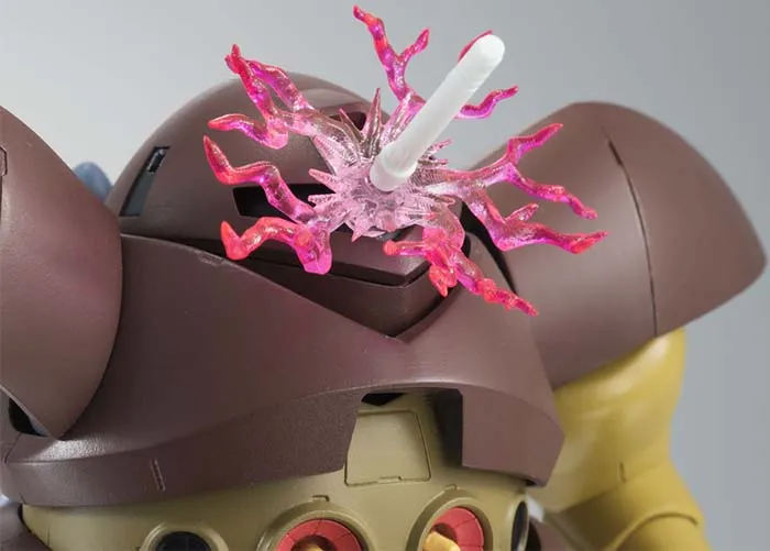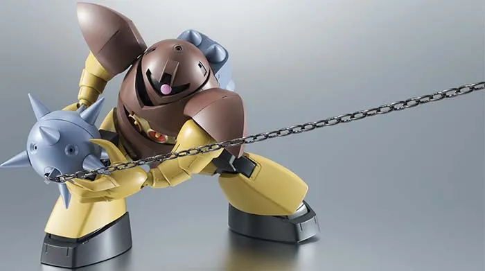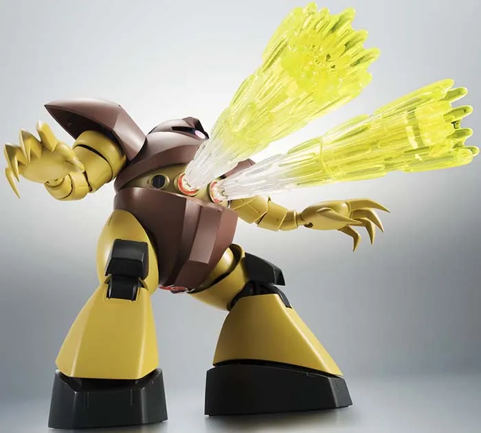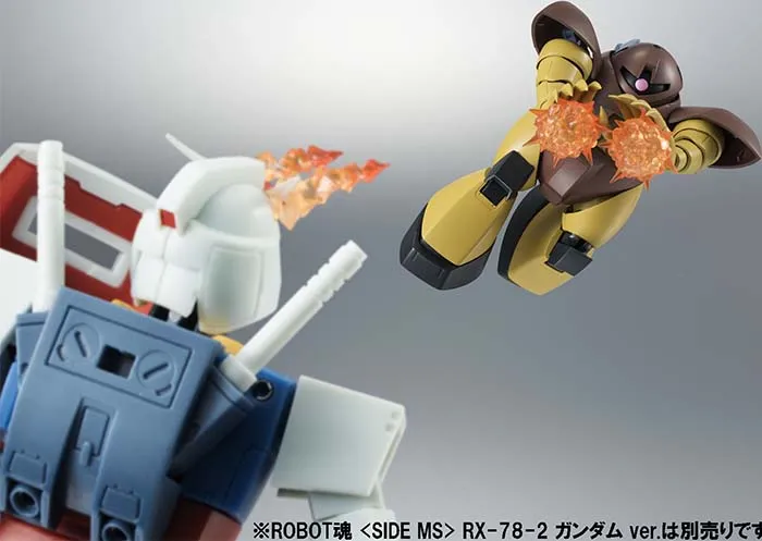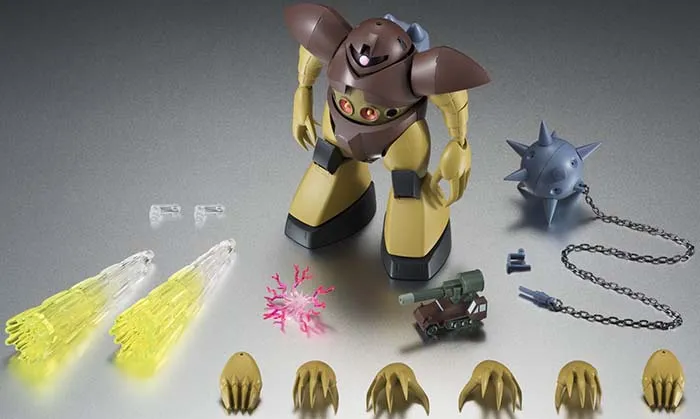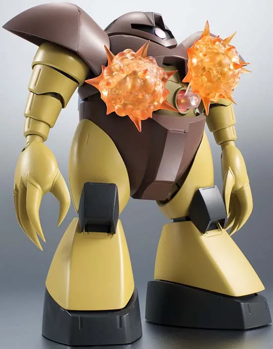 The portly yet powerful aquatic mobile suit joins the ROBOT SPIRITS: SIDE MS lineup! It captures the proportions of the anime design while maintaining superb poseability. The 4.9 inches figure comes with a wealth of accessories: 2 optional pairs of hands (L/R), retracted arms for underwater propulsion (L/R), large-caliber vulcan tank, hyper hammer, 2 explosion effect adapters, 2 stomach mega particle launcher effects, a 'stabbed' monoeye, and a shield grip.