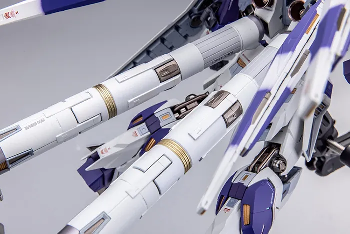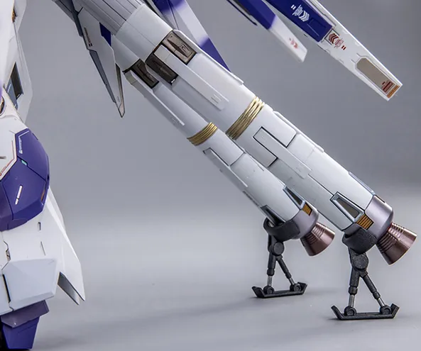 The RX-93-ν2 Hi-ν Gundam is an alternate interpretation of the RX-93 ν Gundam which appears in Mobile Suit Gundam: Char's Counterattack - Beltorchika's Children. The mech advanced unit upgrade package contains the fuel tube extension parts, the fuel tank bracket, and an alloy stent connector. It can effectively solve the problem of unable to stand in a popular finished mech open wings and the risks of the bracket rotor. This product is produced by ABS injection molding and alloy die casting process.