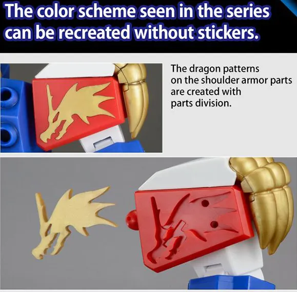 From 'Mashin Hero Wataru', the demon god 'Ryujinmaru' with the soul of Golden Dragon, the guardian god of Sokai Mountain, appears in HG! This model features various gimmicks and blocks that allow for various ranges of movements.
