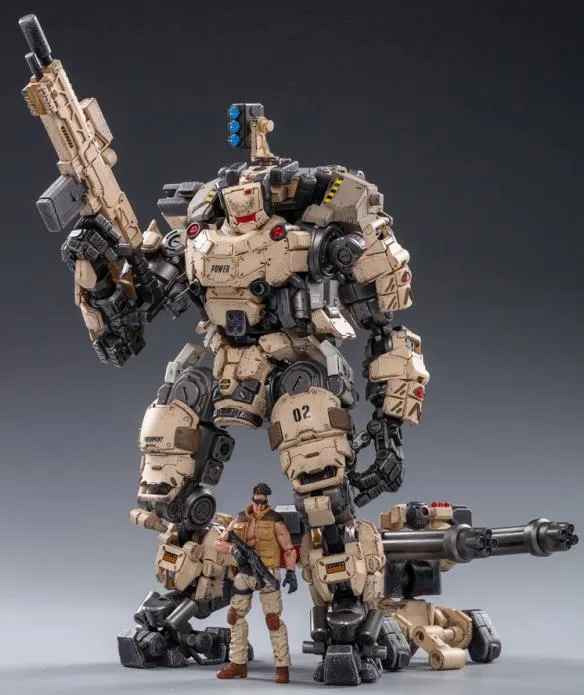 Joy Toy's Dark Source Steelbone Armor and pilot set continues with the desert Steelbone Armor figure, an incredibly detailed mecha unit created in the 1/24 scale.