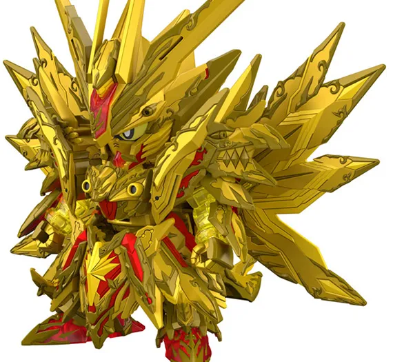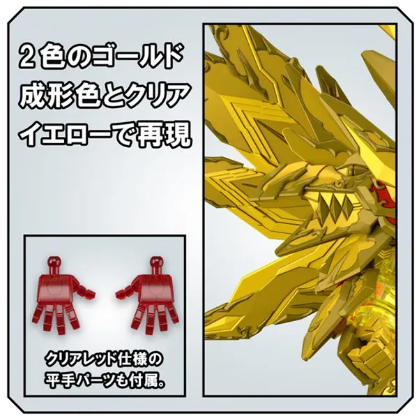 From the gaiden project SD Gundam World Heroes The Legend of Dragon Knight, Superior Strike Freedom Dragon is set to be released! Features a divine shade of gold and a clear yellow, helping to make the model shine. The feather and tail parts can be moved by the ball joint to allow for different poses.