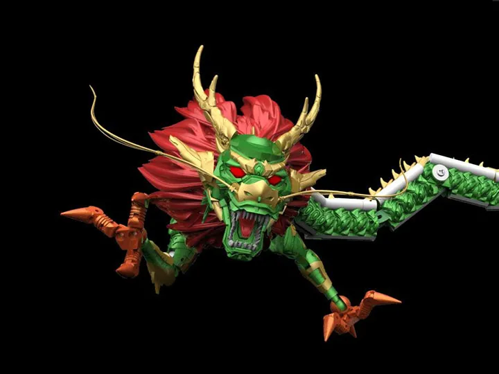 The TS-01G Green Dragon Long March 5 rocket transformation mecha figure transforms from The Long March 5 rocket into a mecha dragon! In dragon form, the figure features 23 points of articulation and stands nearly 26 inches long, and the trusters from the rocket can be used as a stand for the dragon. In rocket mode, the Long March 5 rocket is in 1/200 scale and stands nearly 12 inches tall.