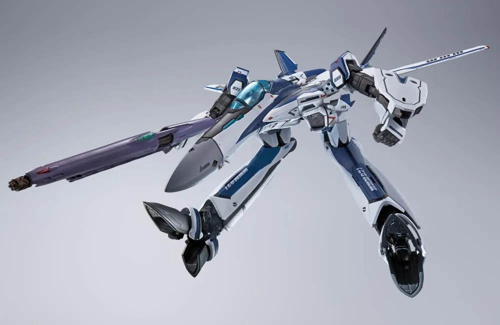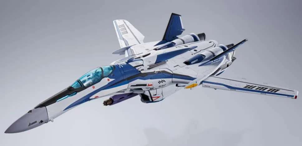 This special item celebrating the anniversary of the Macross series is a uniquely colored edition of the VF-25 featuring a blue-hued Messiah color scheme.