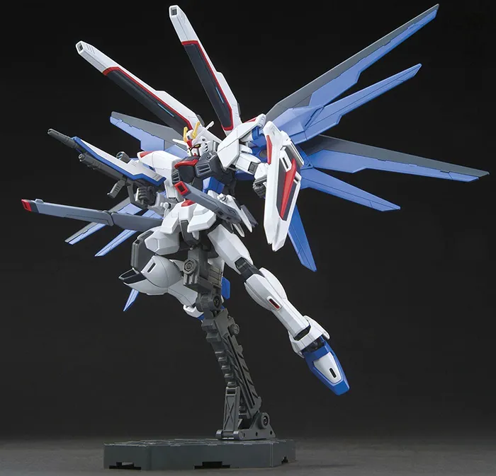 The popular Freedom Gundam re-appears in the HG line with wonderful new proportion and increased range of movement to replicate its signature appearances from the Gundam Seed TV series.
