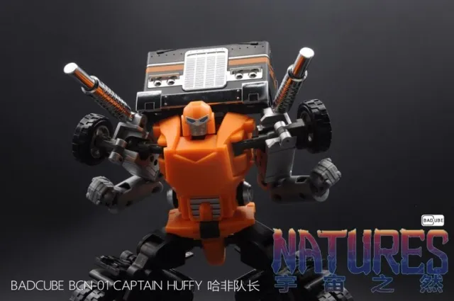 Badcube - Natures - BCN-01 Captain Huffy is Voyager scale and sized! Figure stands 18CM/7.18" in tall in robot mode and transforms into a semi-truck. Equipped with a two axes, this new line from Badcube features premium quality with smooth, intuitive transformation for everyone.