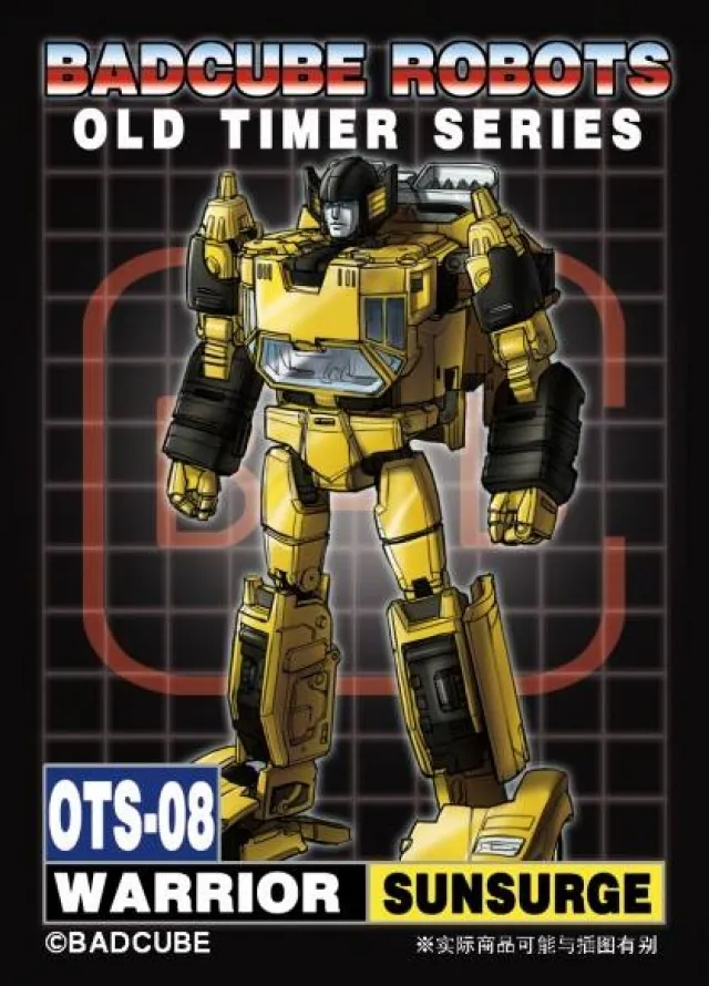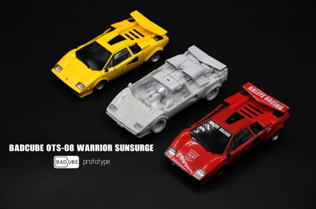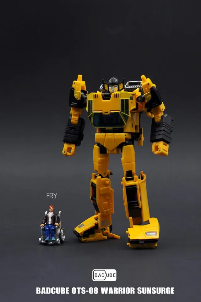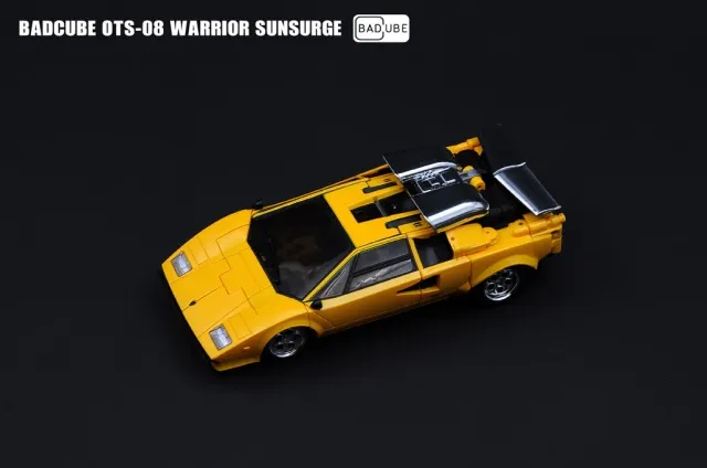 Badcube's OTS-08 SunSurge is Masterpiece Scaled and is made of high quality ABS plastic and includes PVC tires! Transforms to a high speed sports car and features an assortment of weaponry and accessories to aid him in battle!