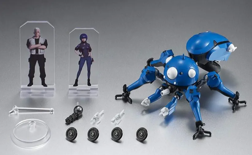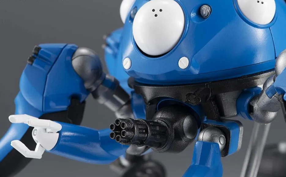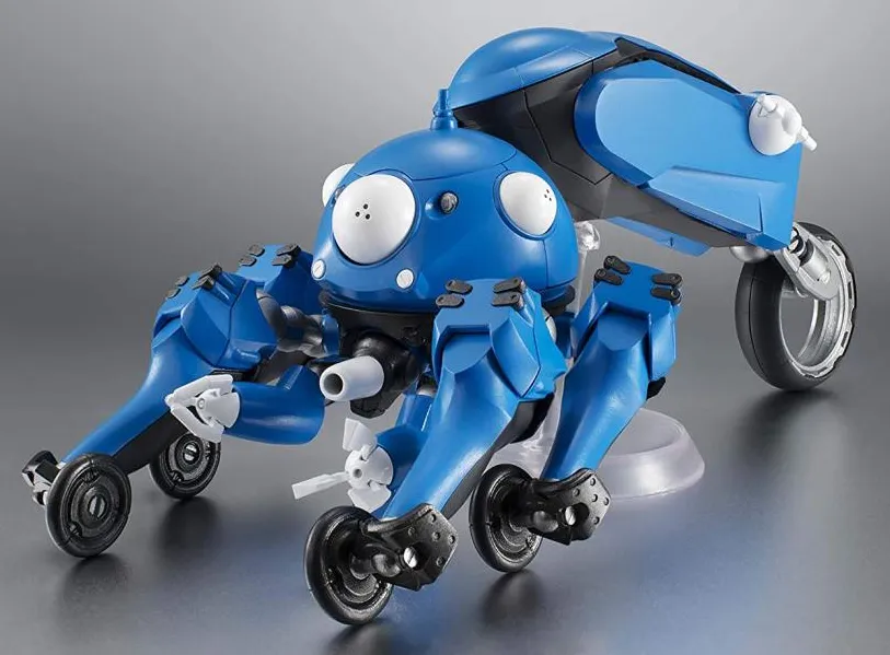 From the Netflix anime series Ghost in the Shell SAC_2045, the Robot Spirits Tachikoma features extensive articulation with joints in unique places, such as the claw, wrists, and eyeballs.