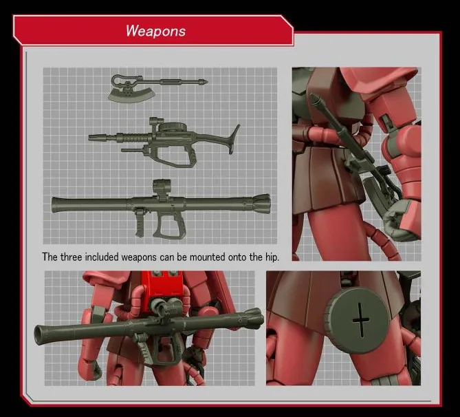 Standing about 5 inches tall, Zaku’s special features include design elements that allows expressive articulation via structural and material part usage.