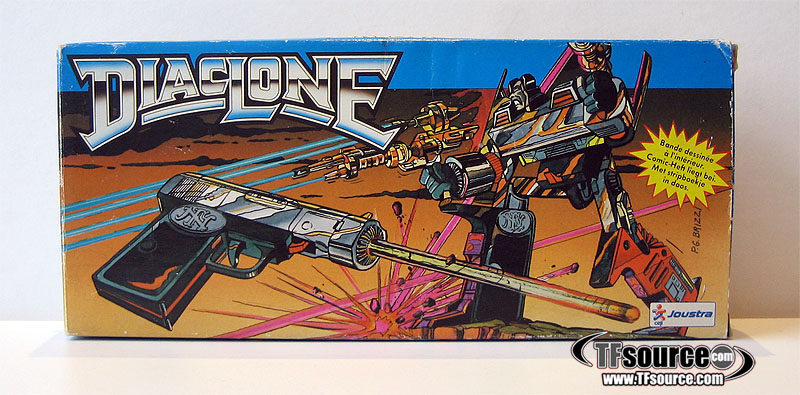 Browning was also available as a MC toy in Italy, released by GiG, and in many other European countries as “Diaclone” courtesy of Ceji Joustra. He never made it into the Hasbro Transformers toy line in North America or Europe, but he was released as Destron D-308 in Japan as part of their exclusive Chōjin Masterforce Transformers series in 1988.