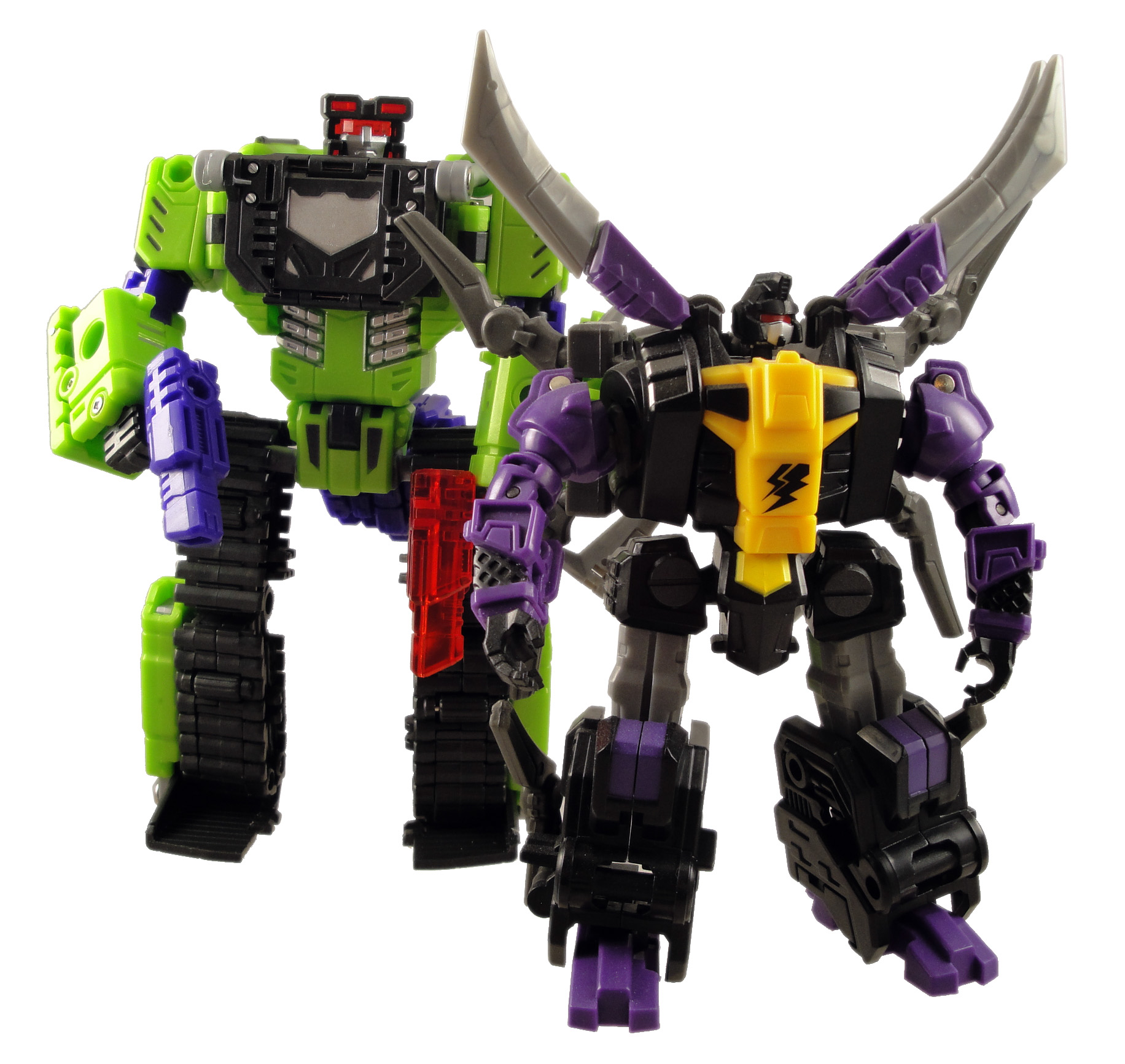 Mostly molded in green, black, purple, and red translucent plastic, Neckbreaker has just enough painted details that it’s worth taking a few moments to investigate each of the paint apps. Generally, the paint is as good as we can hope for from a $100 toy, with almost all of the paintwork crisp and smooth. As with the rest of the Hercules series (available at TFSource), what we get is strong work that, while not perfect, is excellent quality and not att all bad like we often see on mass-produced toys.