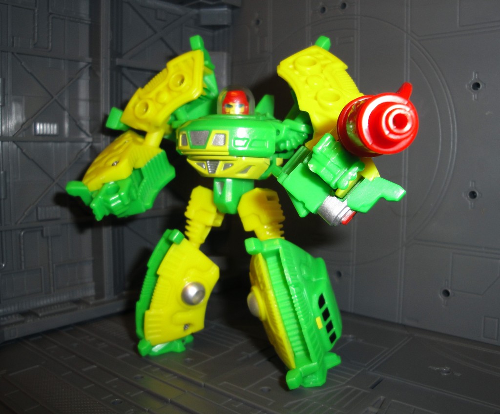 Like the other toys in the Mini-Warriors series UFO doesn’t have a lot of paint apps, but the paint that he does have is cleanly applied and looks good. Silver detailing, a few yellow spots on the green, and the black windows pretty much cover all of the paint and I think that if you look at the photos you’ll see that the paint is neat. An excellent job that just makes me even happier that I pre-ordered this toy . . . and I am ready to pre-order the next wave of Mini-Warriors as soon as I can.