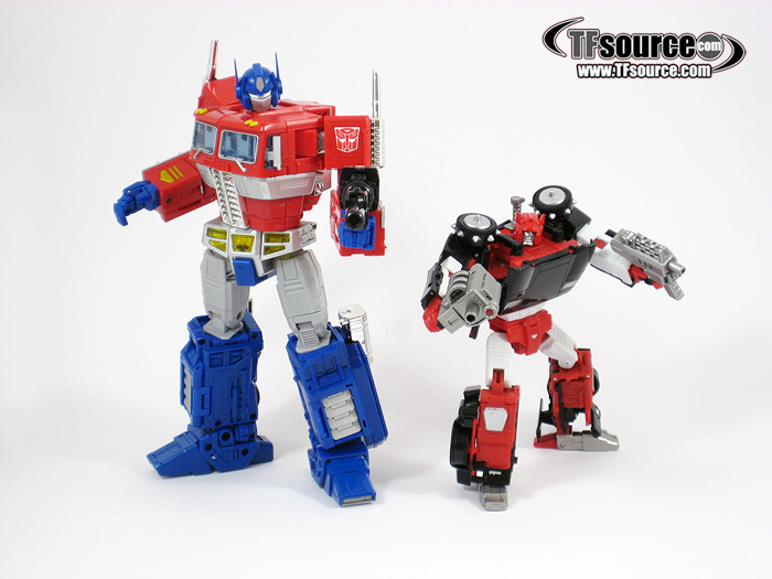 The toy has basic robot and vehicle modes that are nothing new to any Masterpiece Lambor/Red Alert/Tigertrack owner, it’s just black and red with a snarl on his robot face. It’s the weaponisation of either mode that creates the lasting appeal and trademark appearance of the toy. The combining weapons – everything from rifles to swords and spiked wheels – add so significantly to the toy that he can almost be considered to have 2 basic modes, and two distinct attack modes.