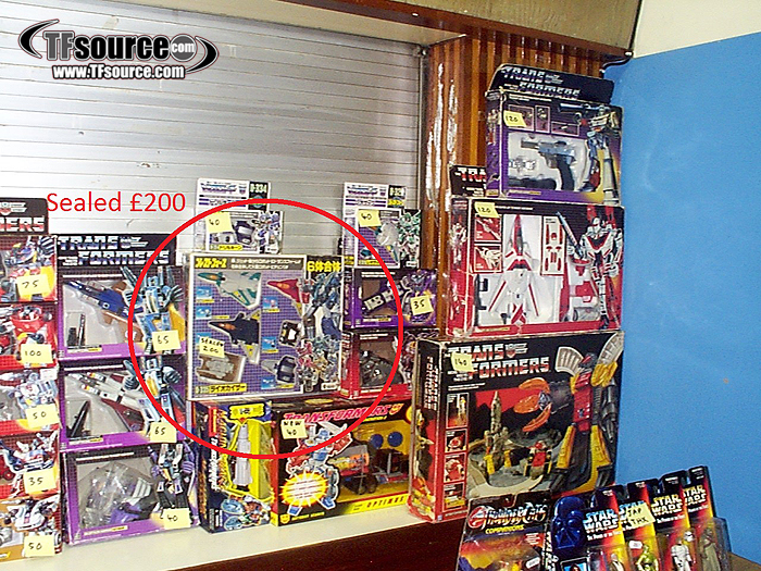 In 1997 at a Memorabilia a guy came up to me asking if I buy Transformers as he had loads of them in his car. I said of course & he handed me a list & asked me to write what I would pay next to each one. Without seeing the toys, I had to make best guesses, he assured me they were all complete & intact. I was slightly mystified as this guy was far too old to have been a child in 1985 but he assured me he had bought all the toys for himself. So I went through the list writing next to each one . . Sideswipe (red car) – £8, Skids (blue car) – £10, Starscream (white Plane) – £10, Menasor £15 etc (Remember this was 1997 before reissues). There were about 50 toys & in the end we agreed on about £700. The guy agreed to meet me with the toys at the back loading door of Hall 18 (Don’t ask me why I remember which Hall it was).