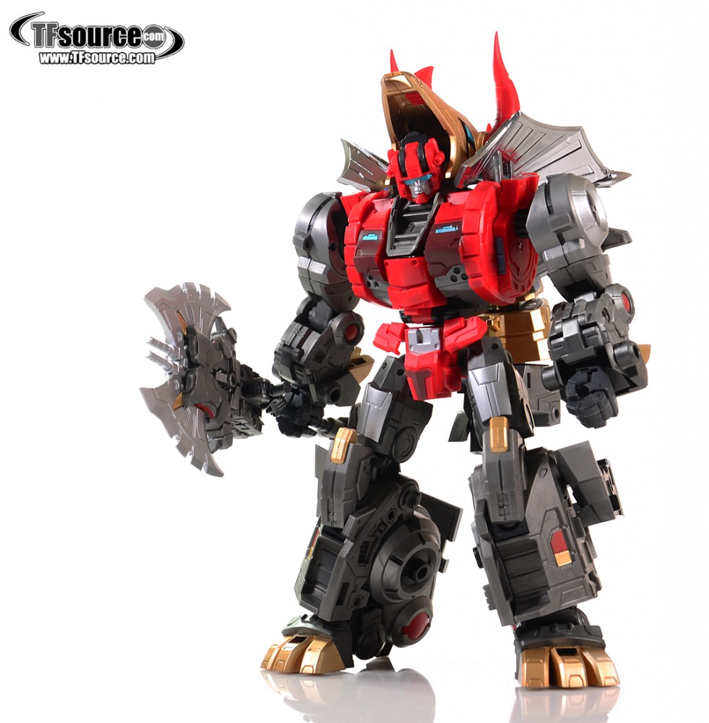 Fansproject continues their Lost Exo Realm dinobot homages with their rendition of “slag”. Featuring many improvements from the previously released and well-received Columpio, Cubrar really seems to show that Fansproject is constantly working on improvements from their previous releases. From small things like wrist swivel, to more noticeable improvements aesthetically like Tekour’s handle being able to go down further in robot mode than Drepan’s, it’s nice to see a consistent move forward in terms of quality.