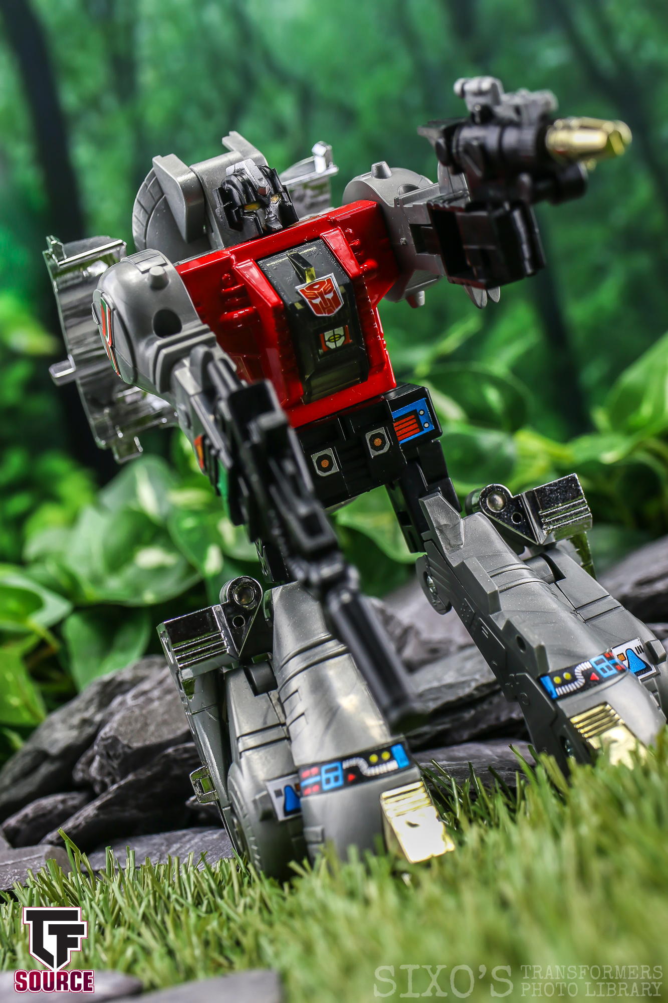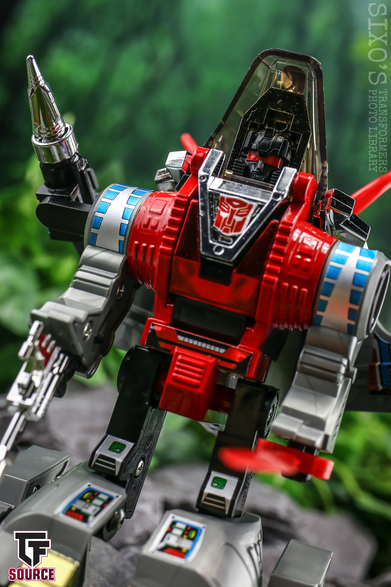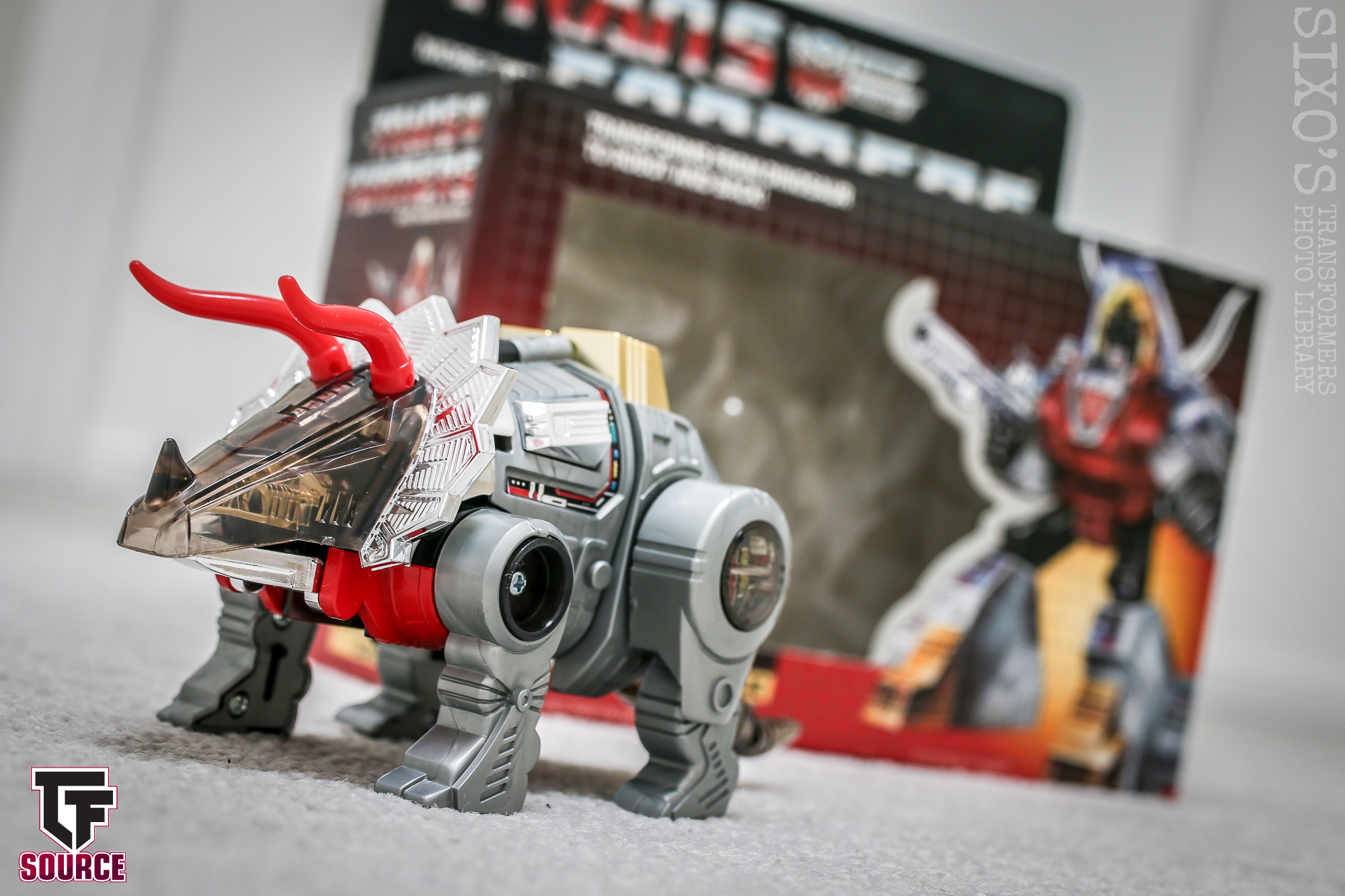 Oh yeah, that’s the stuff. That translucent plastic head is just beautiful, isn’t it? It really makes this toy feel unique. Those stickers make quite the difference too, and I’m particularly fond of the Autobot logo inside the mouth even though it doesn’t fit entirely perfectly! Of course this toy would not have originally sported those emblems in its pre-Transformers days as a Diaclone Dinosaur Robo, and for this reason it’s not uncommon to find some slightly ill-fitting decals on early G1 moulds.