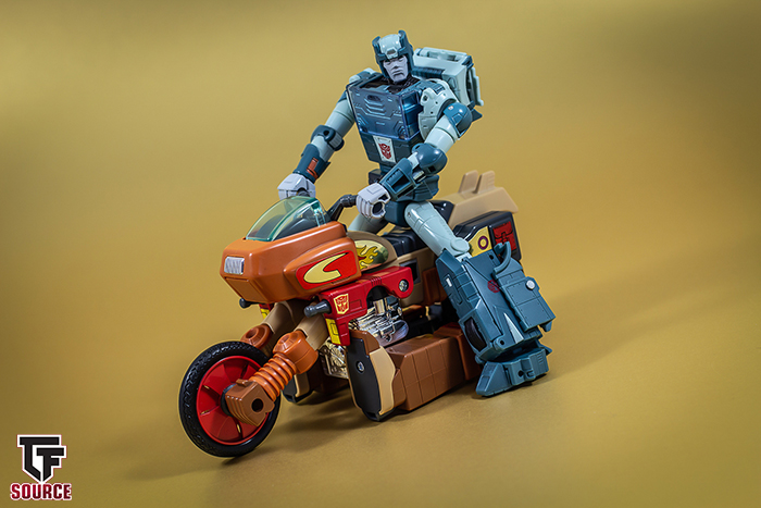 This sort of figure, quick-converting and easy-to-pose, was perfect for this new era of working long periods from home where numerous lengthy Teams or Zoom calls had to be endured! I don’t think anyone ever caught sight of me transforming my SS86 figures just off-camera, but the five cabinets of Transformers toys immediately behind me did not go unnoticed on webcam at my company! Another aspect that really attracted me to the SS86 figures was just how good their alternate modes looked when compared to the TFTM animation models. Kup was a great step up aesthetically from the Titans Return toy, but even its fun transformation can’t match the TR version. Blurr came in for some understandable criticism for its large sleeves that were not well-hidden in robot mode. Personally, I had no issue with either Kup or Blurr’s headsculpts, they worked just fine for me in person. I could easily have lived without Blurr’s can accessory, though, however well it could be stashed away inside his legs.