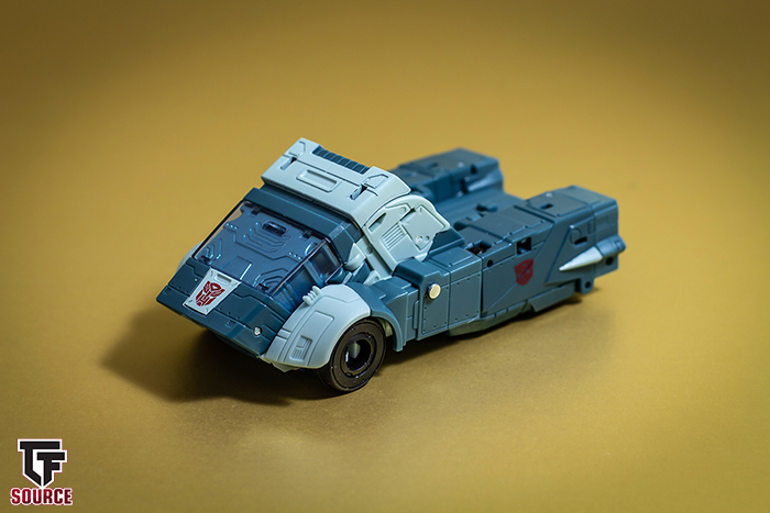 First impressions were really good, especially as I’d opened Kup before the others. There was lovely paint application, a fun accessory in the Energon goodie dispenser, and a great range of articulation on the old timer. Transforming him was an interesting experience, and I stuck to the instructions. Some of the panels felt flexible and I was surprised by the force required to clip the legs into the front wheel arches. I found that a recurring theme with these newer figures (to me) was that the more I transformed them, the better the tolerances and fits became in both modes. First time through, neither Kup nor Blurr sat right in vehicle mode, but I was grateful to see it improve with every conversion.