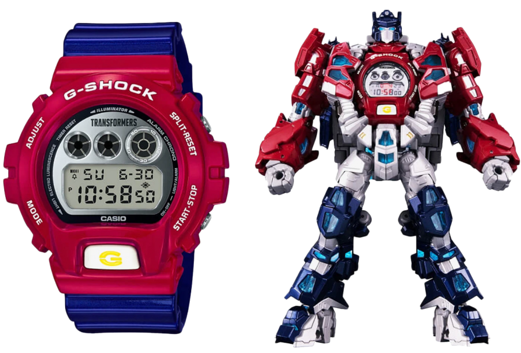 Not content with being a pen, perhaps it was about time (groan) that the Autobot leader became a watch, eh? That happened in 2018, this time in celebration of the brand’s 35th anniversary (as if the excuse was needed). Technically, Prime doesn’t actually turn into a watch, more than a ‘pedestal’ for it, and you can then mount either a G-Shock DW-5600 or DW-6900 on the stand or fit it inside his robot mode chest. Talk about lighting your darkest hour.
