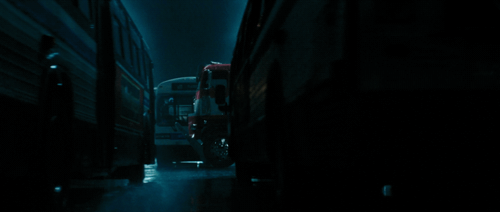 Optimus Prime transforms and steps through a parking lot full of buses. The speculation is that he’s hunting for the Decepticon known as Transit at this point.