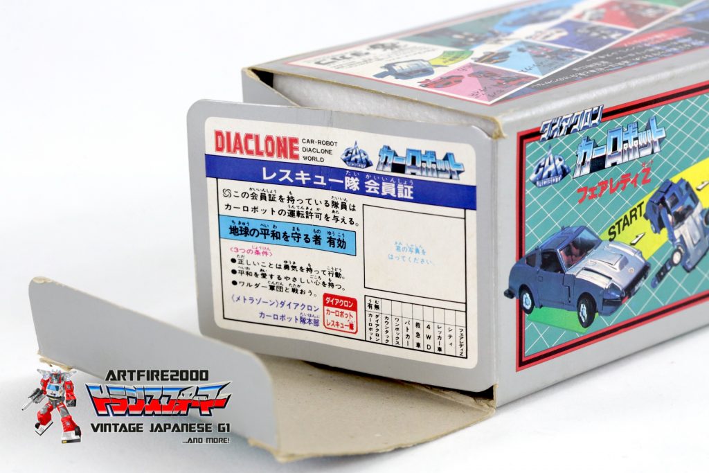 3) One, with a Diaclone Police Datsun (Prowl) hood sticker instead of the standard gold sticker, was sold by the Japanese collector’s store Mandarake to a prominent collector in the West, with all accessories in styrofoam. Given the strange use of the Police hood sticker, this one is likely a Takara internal sample.