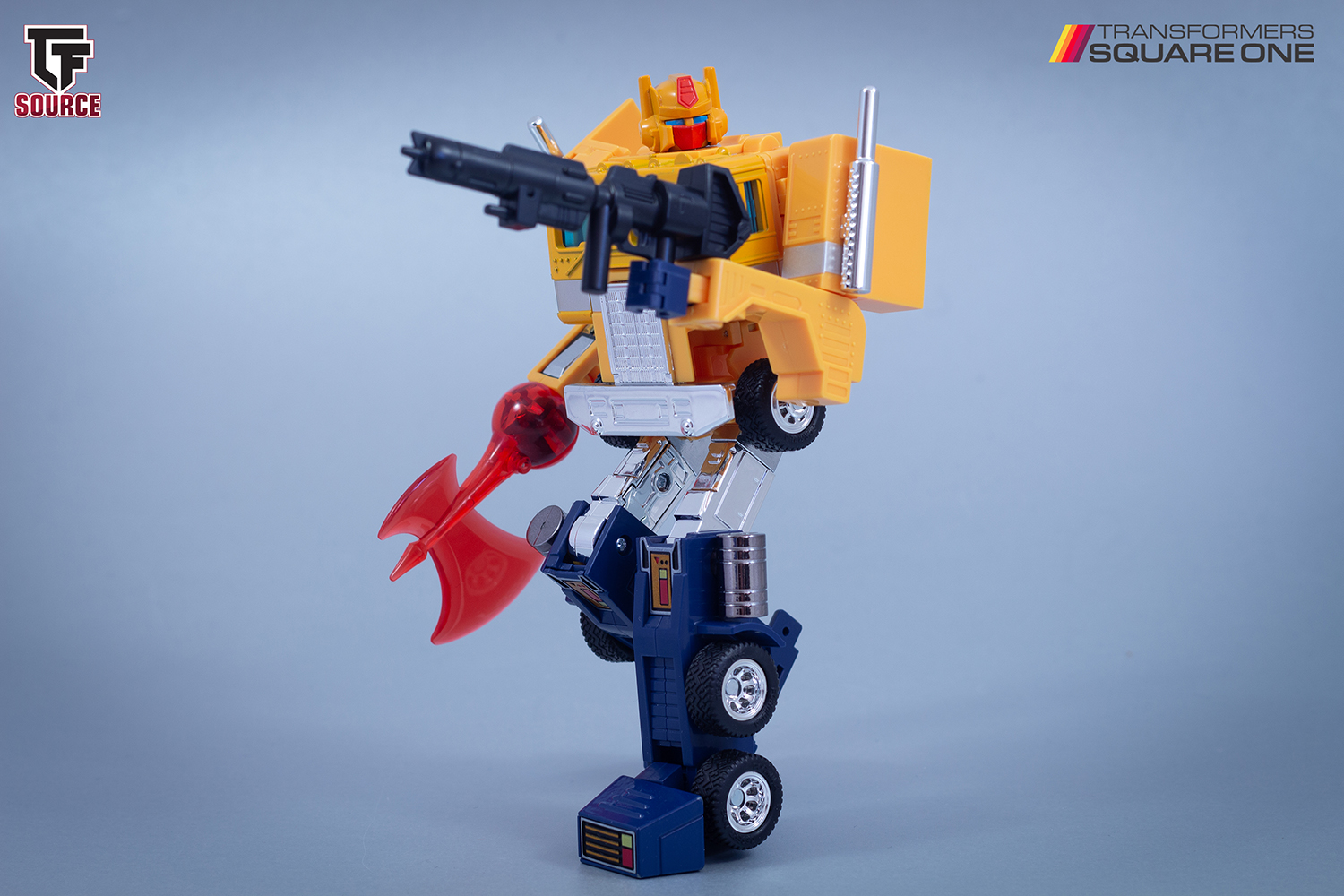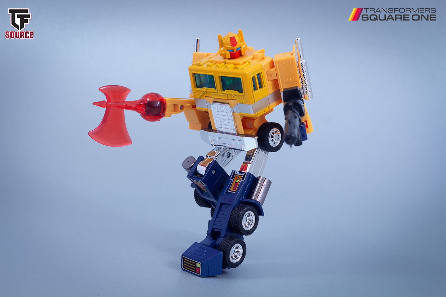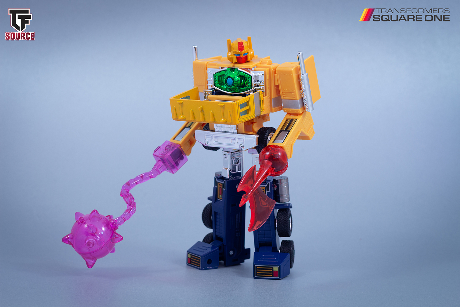 This gallery features the absolutely incredible Missing Link Transformers Sentinel Prime with Roller (“Dillo”), the newly remoulded trailer and removable command centre, plus a stack of accessories! Please note, the purple mace is from the Centurion pack and is photographed here in reference to Beast Machines Dillo’s mace – since Sentinel Prime’s Roller is called “Dillo” with this release.
