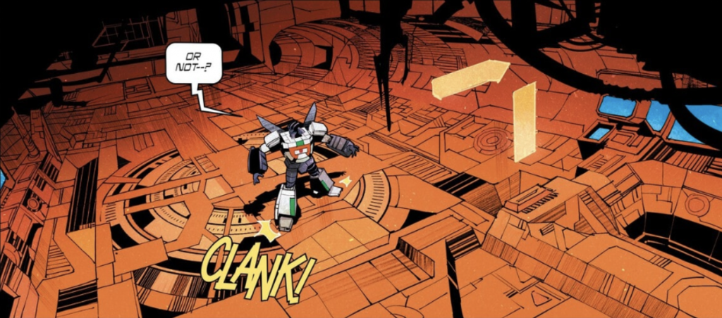 #25 begins on familiar territory, ably guiding readers in gently by wooing them with the pencils of established series artist Jorge Corona for an introductory sequence featuring the defeated Decepticons. Megatron’s band are licking their wounds following last issue’s climactic defeat, and the despot is none too happy about their general performance, admonishing them one by one. This whole sequence felt familiar in other ways too, instantly recalling the classic splash pages from the days of 1980s Marvel comics Transformers, where countless characters would introduce themselves and often ramble about their signature special abilities (in a transparent effort to also let you know why their toy was so cool!). We’re not sure if this was an intentional homage, but it made for a striking series of pages, nonetheless, and got the new era of the book moving in style.