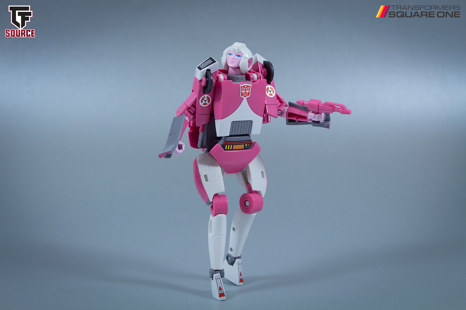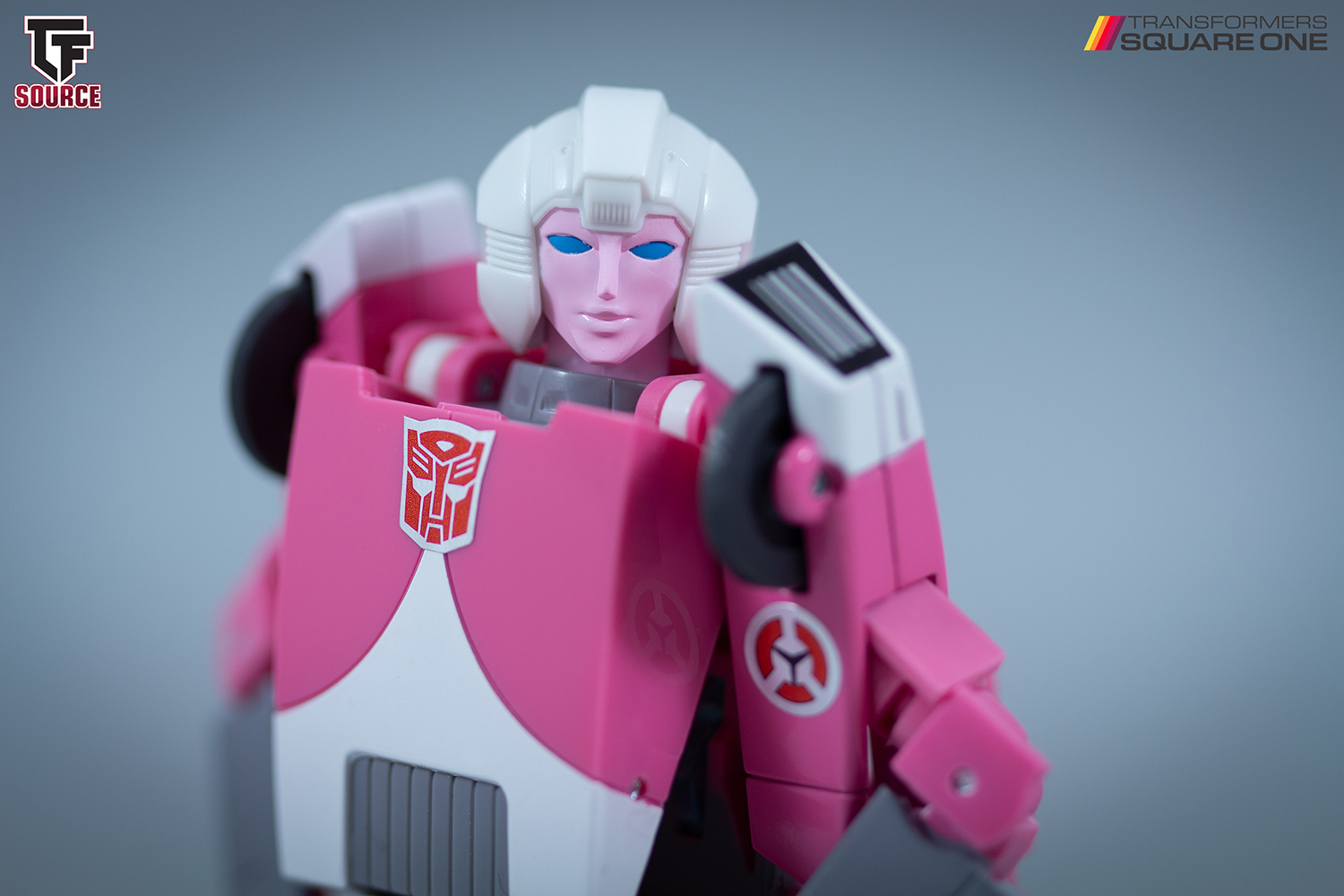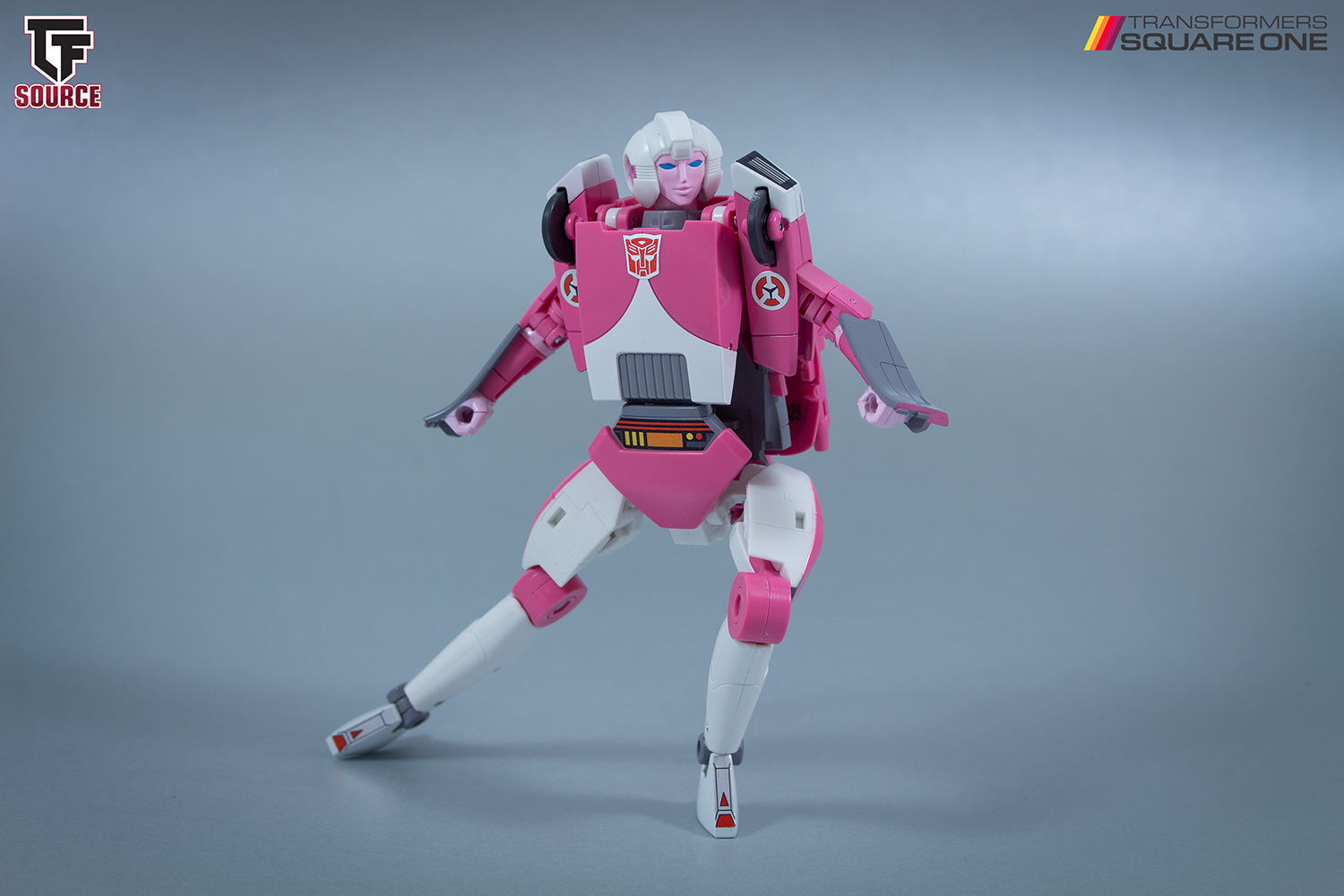 This gallery features the absolutely incredible Missing Link Transformers Arcee in anime colours with stickersheet applied! Missing Link just does not miss.