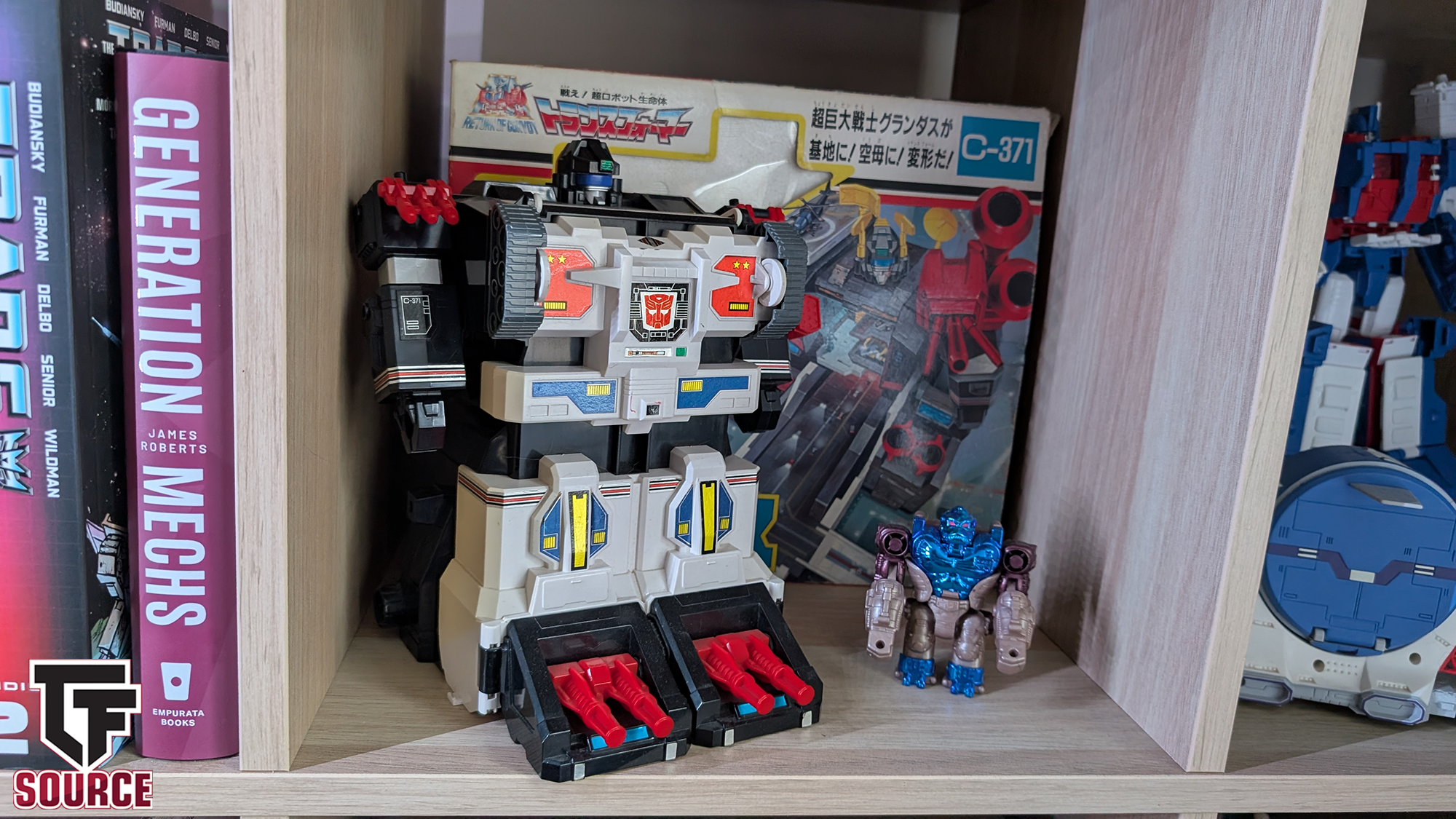 Last year at TFNation, the indomitable Andy K came over to my table with a boxed Grandus. I’m not too proud to say I welled up in both appreciation and at the spectacle of the item in question. What a beautiful thing to behold. Of course I immediately agreed upon a price and bought the thing. I usually have my G1 toys upstairs in my office but Grandus gets his own little cubby-hole in the living room.