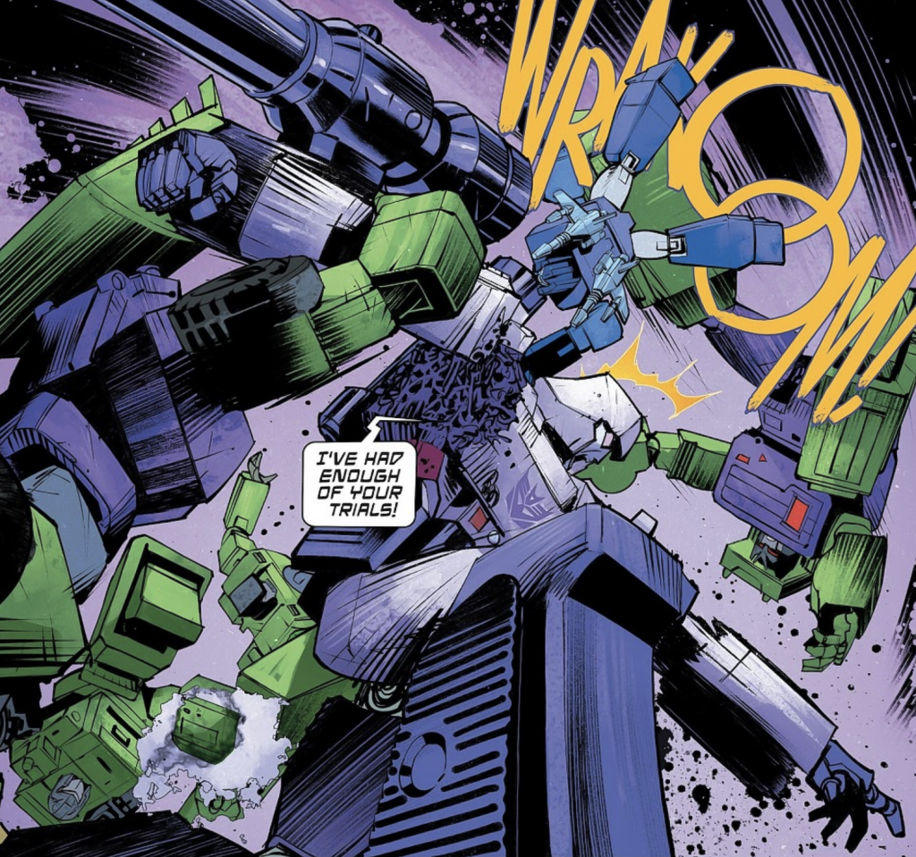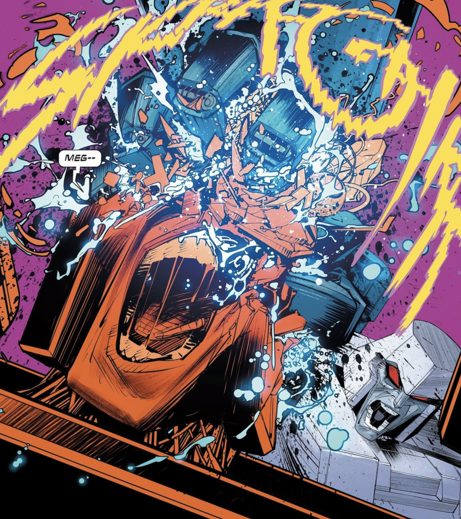 It’s a slightly more maniacally gleeful portrayal of Megatron than I felt we were perhaps getting under Daniel Warren Johnson’s tenure. Previously, the despot at least seemed to have some sense of twisted “honour” about him, yet here he’s clearly revelling in the carnage and destruction.
