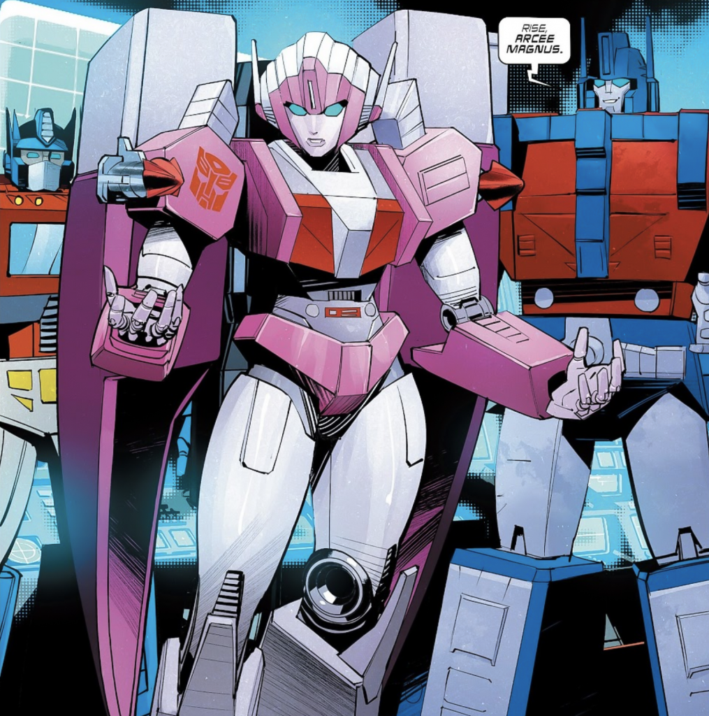 What does leave me slightly baffled is the implication that Ultra Magnus must have a different name, as “Magnus” is evidently a title. If Arcee is to become Arcee Magnus, does that mean his name is just “Ultra”? Or did he adopt a new name entirely? We may never know.