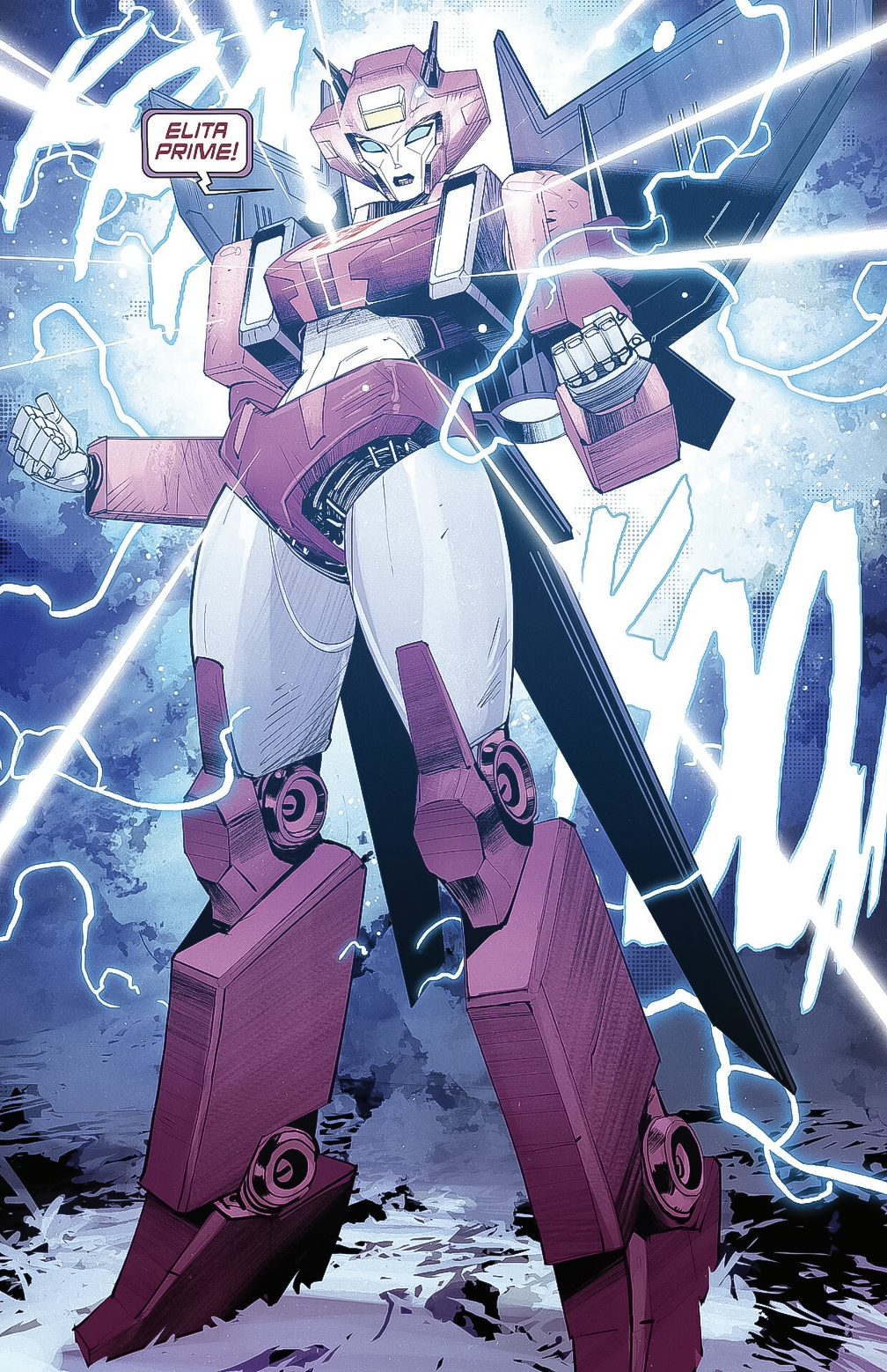 Unlike our typical format, where we explore the issue beat by beat, it’s worth summarising the overall story in one go here, as it’s fairly straightforward and linear, focusing entirely on the two characters central to the whole affair: Optimus Prime and Elita-1.